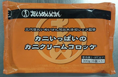 国産玉ねぎ、マッシュルームのほか、紅ズワイガニを約17%使用。カニいっぱいの具だくさんコロッケです。