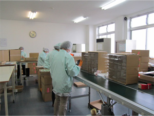 クリーンルームでの作業はお菓子の詰め作業を中心に行っています。